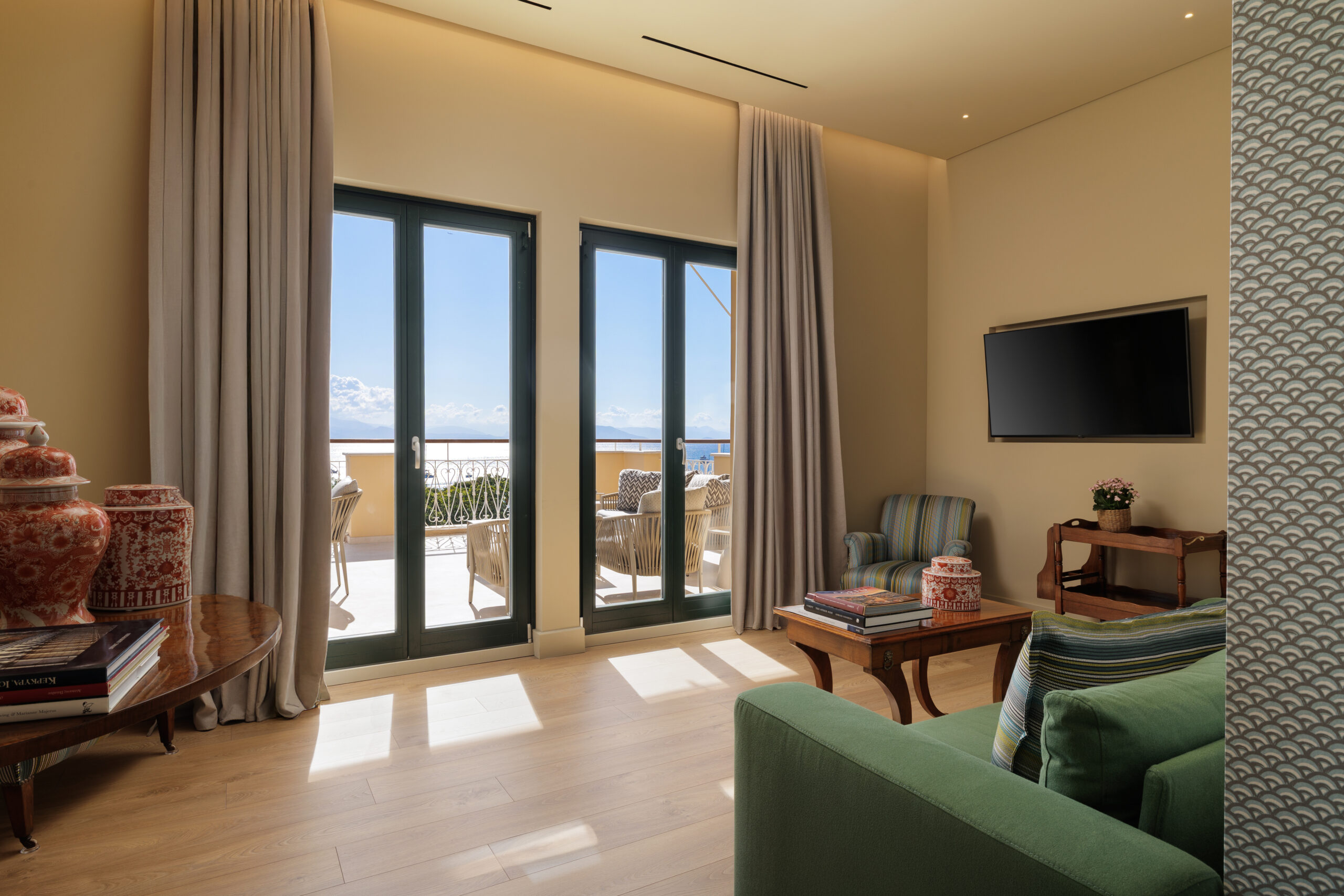 Enjoy a luxurious escape at our spacious suite that features a large terrace with a panoramic view of the Ionian Sea and the Old Fortress.